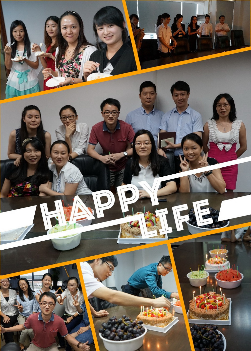 2014年9月12日下午16:30,迎来公司2014年第三季度生日会,寿星们齐聚一堂,共同唱响生日之歌。